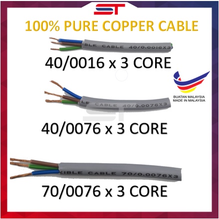 100 Pure Copper Cable 23 0016 40 0016 40 0076 70 0076 X 3 Core Cable Pvc Flexible Wire Flexible Cord Cable Shopee Malaysia